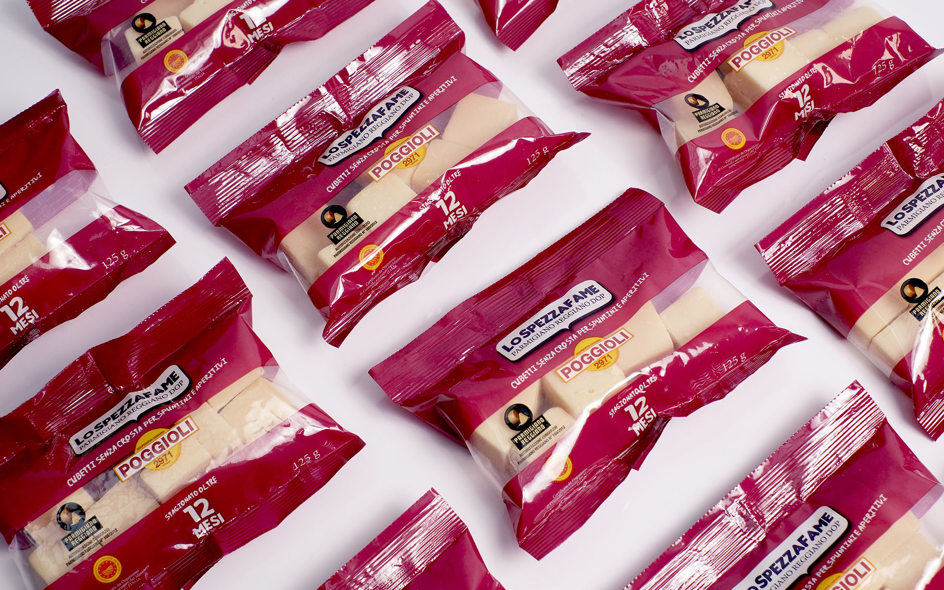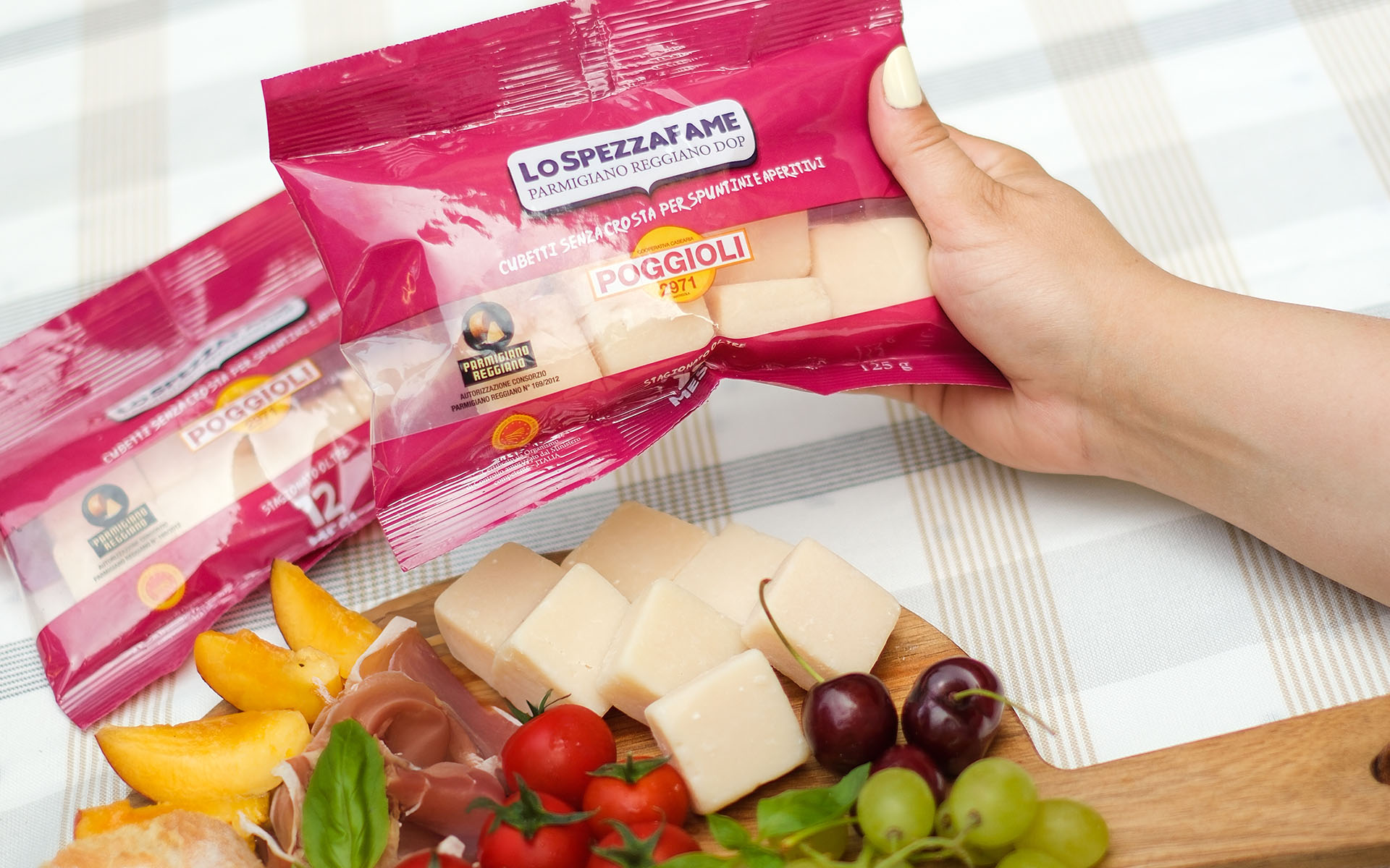 “Lo SpezzaFame”: ecco il nuovo formato di Parmigiano Reggiano firmato Caseificio Poggioli, pensato per rendere ogni momento speciale, dalla pausa lavoro all’aperitivo tra amici. Si tratta di pratici cubetti di Parmigiano Reggiano senza crosta, confezionati in bustine da 125g. Una soluzione sfiziosa e di qualità per chi ama i sapori autentici, senza rinunciare alla comodità.